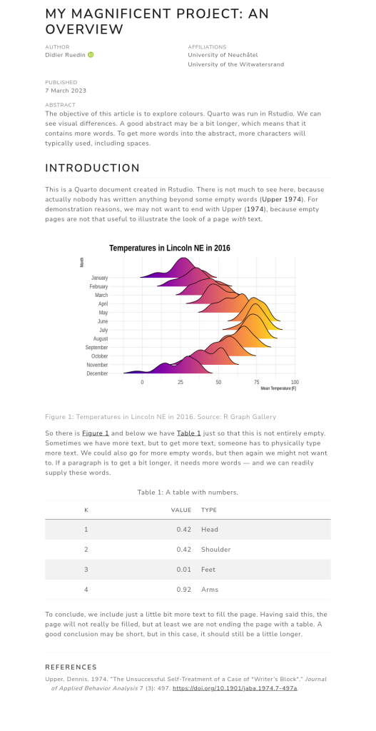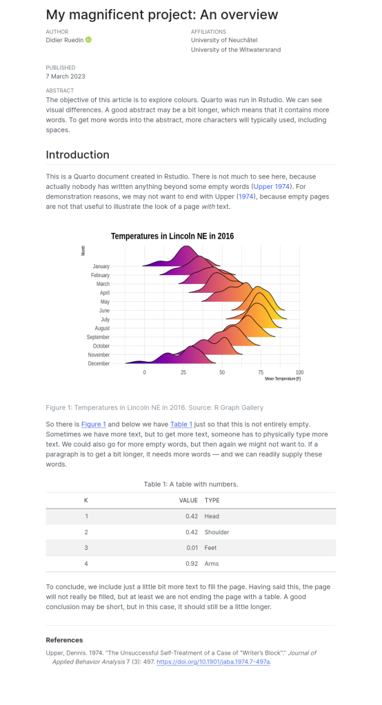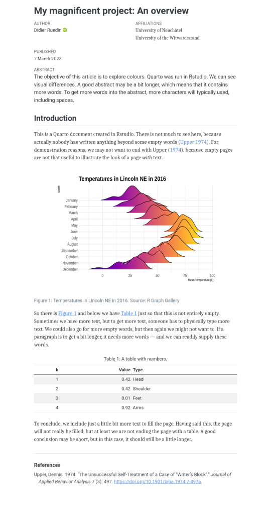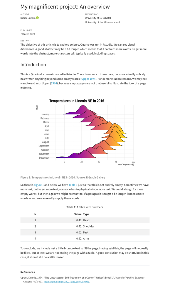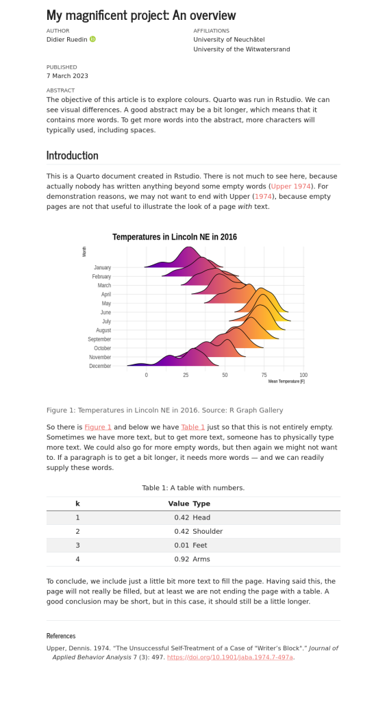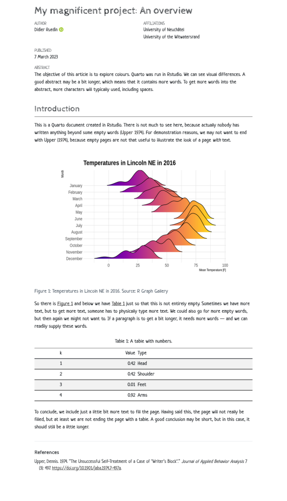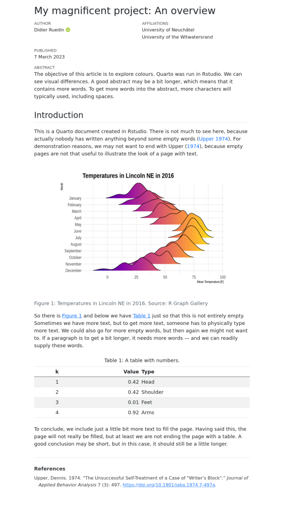 Quarto comes with several HTML themes built in. They are documented, but coming from the Bootswatch project, the existing documentation doesn’t give a good impression of what each theme looks like when used for an article.